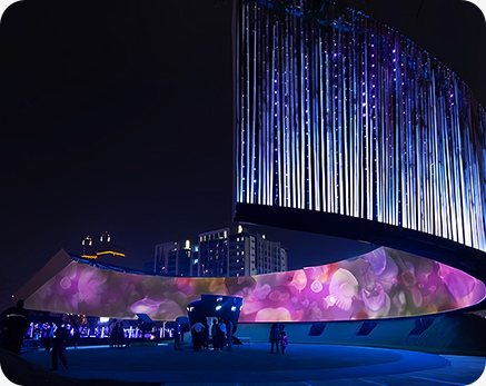 數(shù)字信息時(shí)代,華竣數(shù)創(chuàng)運(yùn)用燈光秀、超清視頻、特種影院等新媒體視覺(jué)藝術(shù)的聲光影電炫酷效果調(diào)動(dòng)觀者的所有感官全身心參與展廳視聽(tīng)體驗(yàn),享受沉浸式心流狀態(tài)。